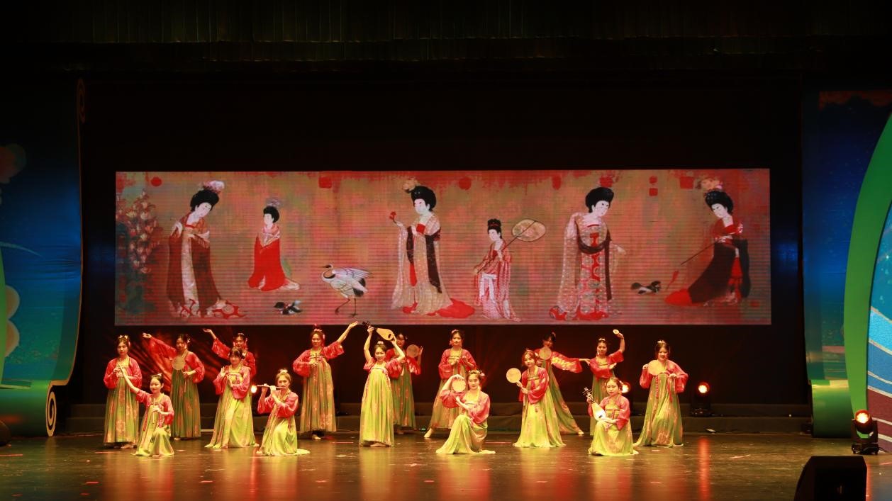 《一梦盛世》分为古典舞和现代舞两个部分。古典舞以唐朝为背景,舞姿优雅、律动唯美,气势宏大,为我们重现了唐朝独特的艺术风貌和宏伟壮丽的景象。