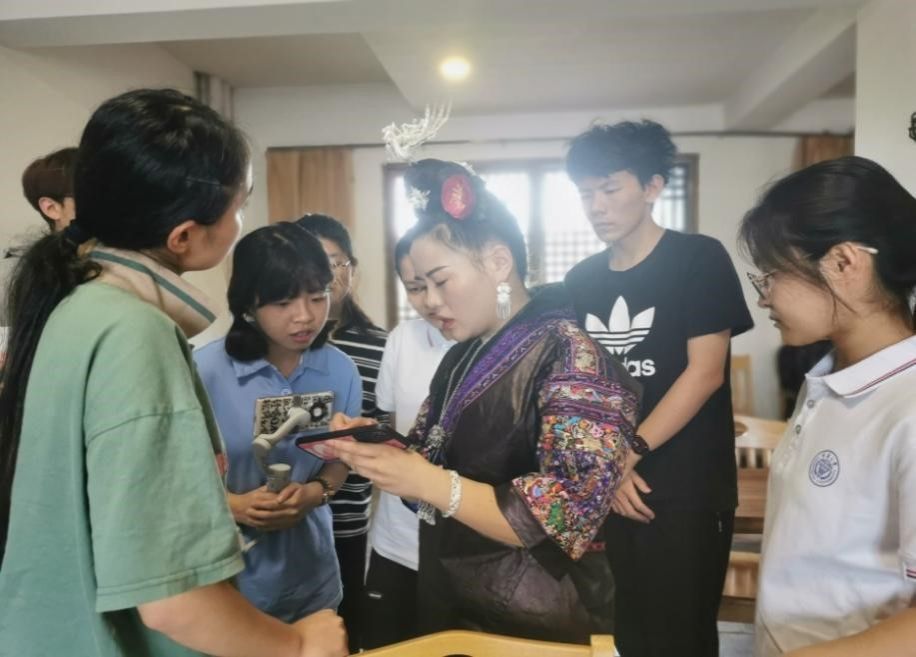 苗族的头饰记述了苗人的历史。头饰小组在调研过程中观摩了苗族发型的制作过程,并尝试穿戴了苗族盛装发饰。他们详细地了解了不同发饰的纹样及其背后的文化背景,对苗族神话传统产生了强烈的兴趣。在研究苗人头饰文化背景的过程中,小组成员通过短视频的方式记录并宣传成果。这不仅使苗族的历史文化得以进一步传播,也让小组成员从苗族艰辛漫长的迁徙创业史中得到了宝贵的精神财富。