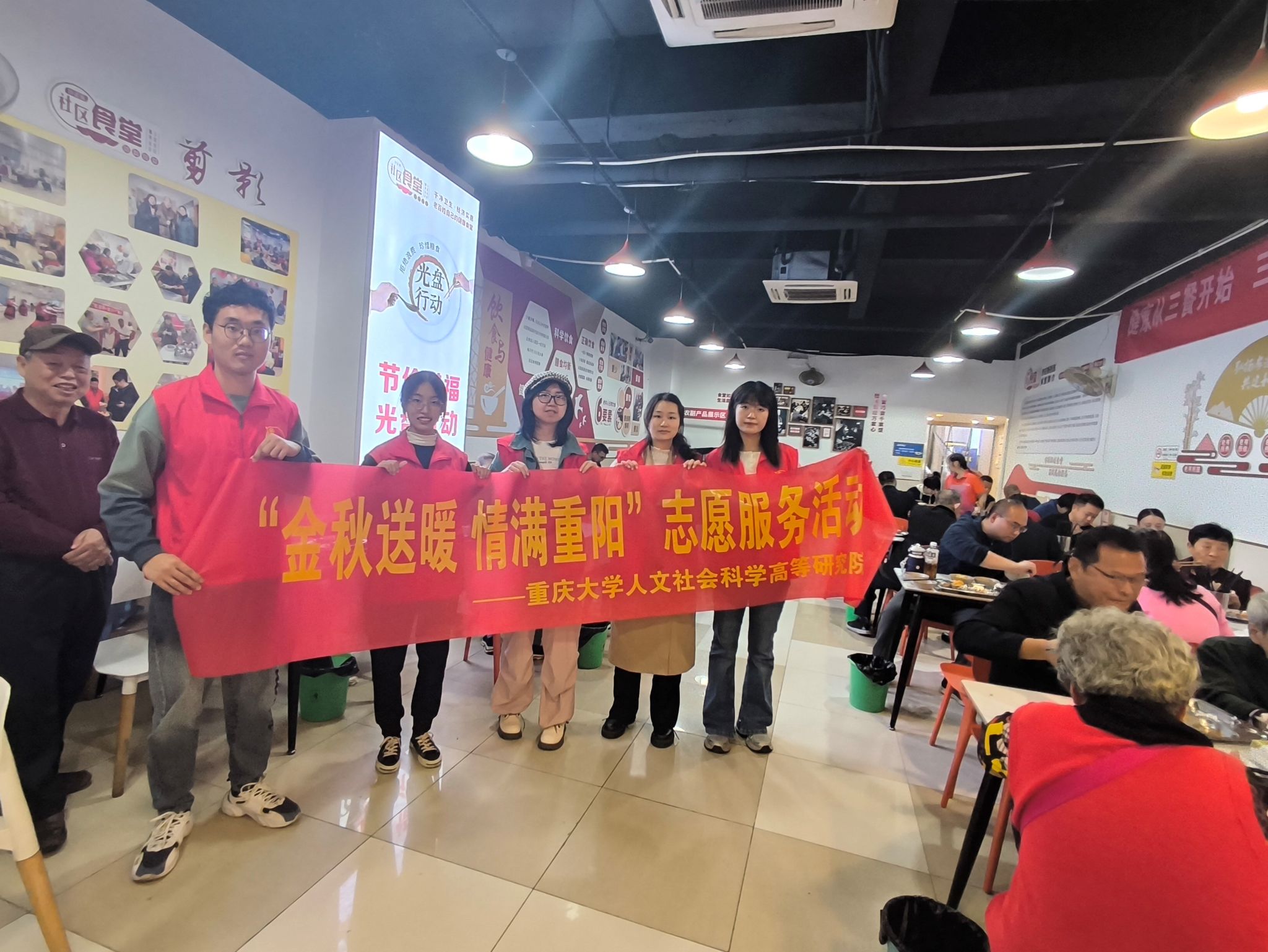 在重阳节即将到来之际,2024年10月10日,bsports必一登录入口人文社会科学高等研究院爱心社志愿者与沙正街社区食堂工作人员携手合作,成功举办了主题为“金秋送暖,情满重阳”的公益活动,为社区的老年人带去了温暖和欢乐。本次活动在沙正街社区食堂举行,吸引了近30名老年人参与。志愿者们通过一系列精心策划的活动内容,为老年人献上了一个充满关爱与欢笑的重阳节。