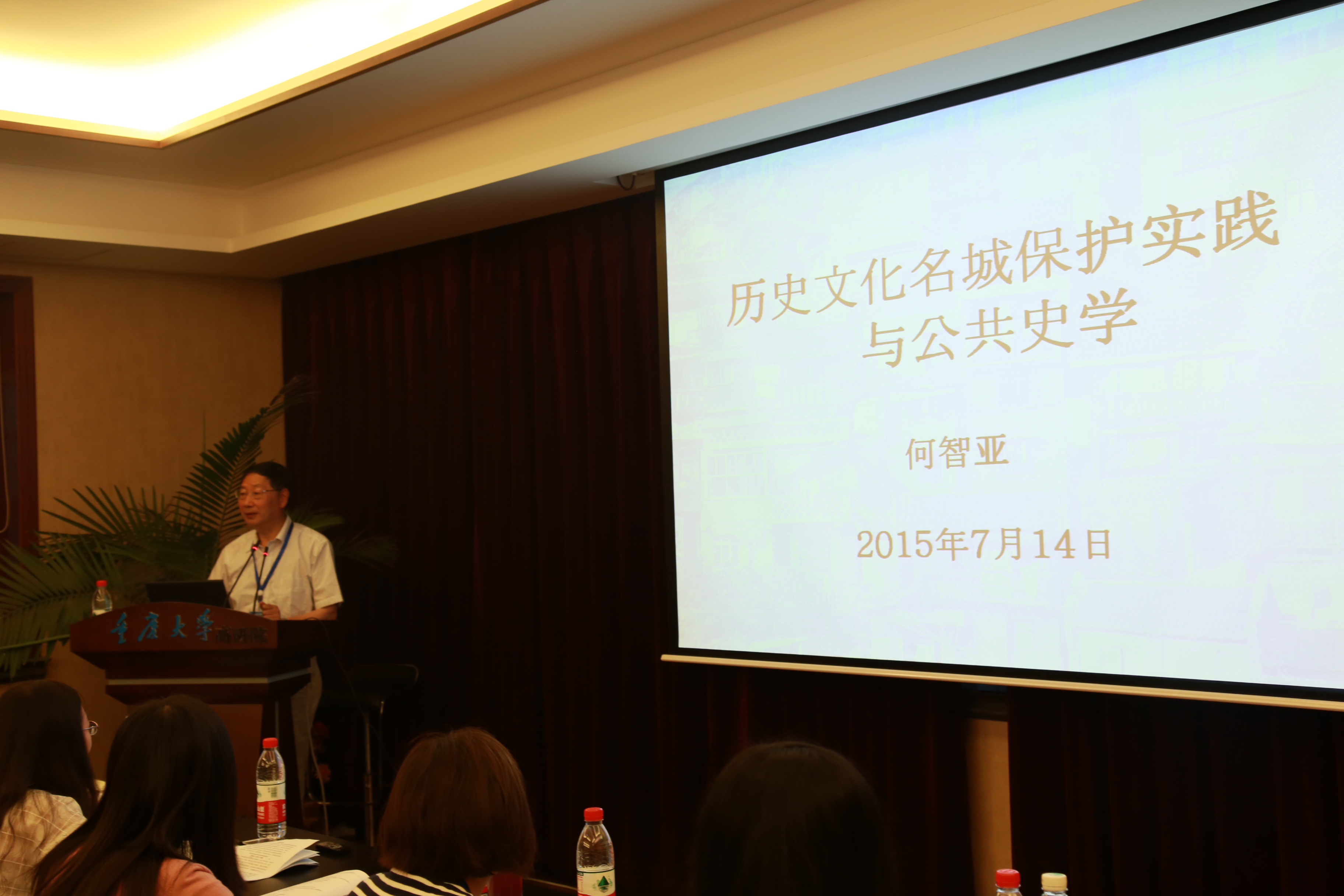 在全体人员合影留念之后,重庆历史文化名城专业学术委员会主任、bsports必一登录入口客座教授何智亚为营员们带来了一场题为“历史文化名城保护实践与公共史学”的专题讲座。讲座中,何智亚教授为同学们讲述了重庆的历史文化以及古建筑遗址,并结合他自己曾经参与过的如重庆著名文化旅游景点洪崖洞的景观设计和文化遗址保护等实践活动,向同学们解释了历史文化名城保护实践与公共史学研究之间的关系。在提问交流环节,营员们就文化遗产保护与旅游开发、文艺遗产保护的公众参与等问题与何智亚教授进行了交流和探讨。