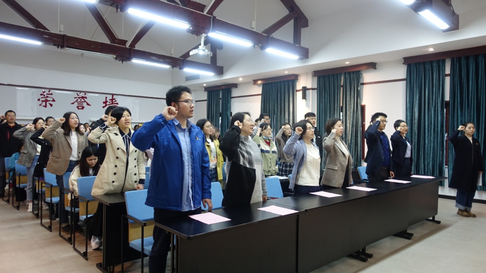 所有党员在领誓人带领下重温入党誓词,在庄严宣誓中铭记初心,牢记使命。